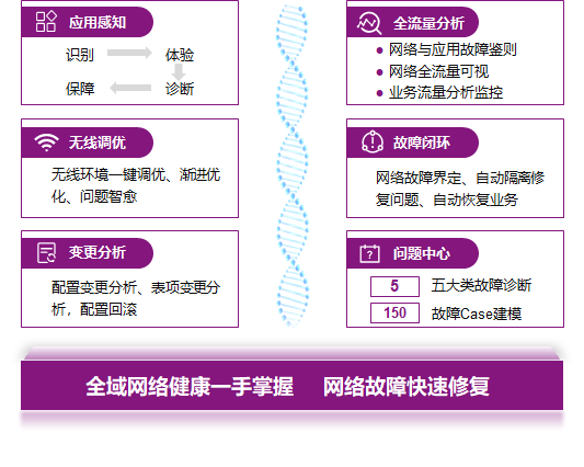 紫光恒越SDN-Campus智能园区网解决方案以全息网络数据感知、全场景自动化赋能等技术为核心,在业务部署、终端管控及智能运维等领域持续创新,深度契合当前园区智能化、移动化、物联化的建设需求,助力用户打造极简、智能、融合、安全、超宽的新一代园区网,赋能用户数智化转型之路。